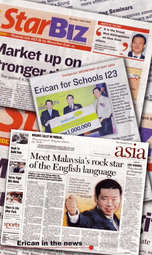 After completing his tertiary education in the United States, Datuk Eric Chong decided to start a company to help English learners who were struggling with the language. He used his learning experience and told them that “If Eric can, so can you!” Thousands upon thousands of English learners in Malaysia came to Erican to experience the unique learning system and culture that Erican had to offer. Erican soon became one of the largest English learning networks in Malaysia, with a success rate of helping more than 300,000 learners to excel in the language since its inception 30 years ago.